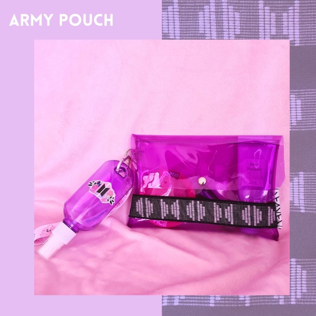 Made from PVC accented with a customized weave (handwoven in Iloilo). The Handwoven fabric used is customized logo with the use of purple thread to represent all the bts army(s) out there.